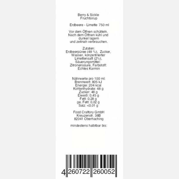 Schreibe die erste Rezension für „Berry & Sickle Erdbeere-Limette Fruchtsirup 250ml“